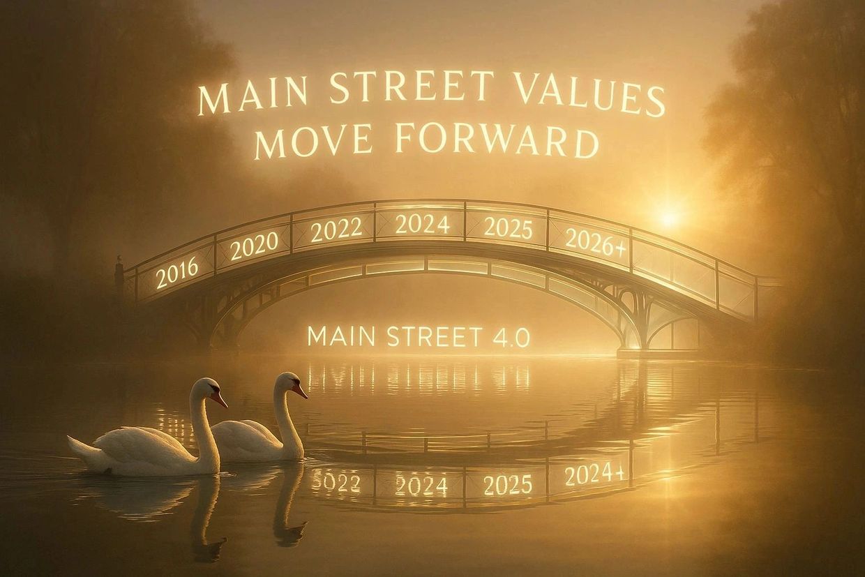 Project Piercing Glimpse became our five-year mirror — a chance to look deeply into how Main Street could rise again. Todd called it a “study,” but it was really a pilgrimage of understanding: exploring how community, commerce, and compassion could thrive together in the Fourth Industrial Revolution.